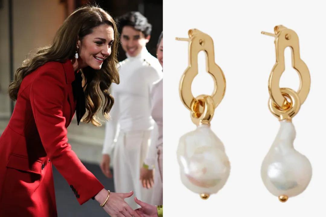 到了相對氛圍輕快的場合,凱特則會用不規則的巴拉克珍珠耳環,來搭配紅色連衣裙,凸顯小個性,堪稱珍珠搭配界的“十級選手”~