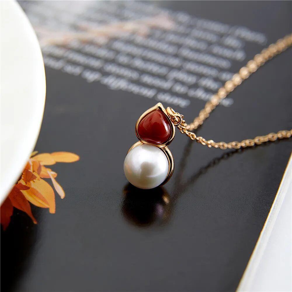 這款福祿珍珠紅葫蘆項鍊,特別適合春節,葫蘆造型取名“福祿”,寓意和造型都很美好。