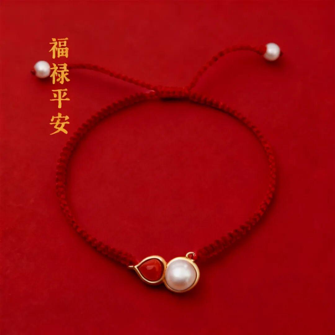 另外還有這款“福祿平安”,小紅繩也讓人一見傾心,小巧可愛的葫蘆形狀,分別鑲嵌一顆南紅和珍珠,寓意福祿滿滿~