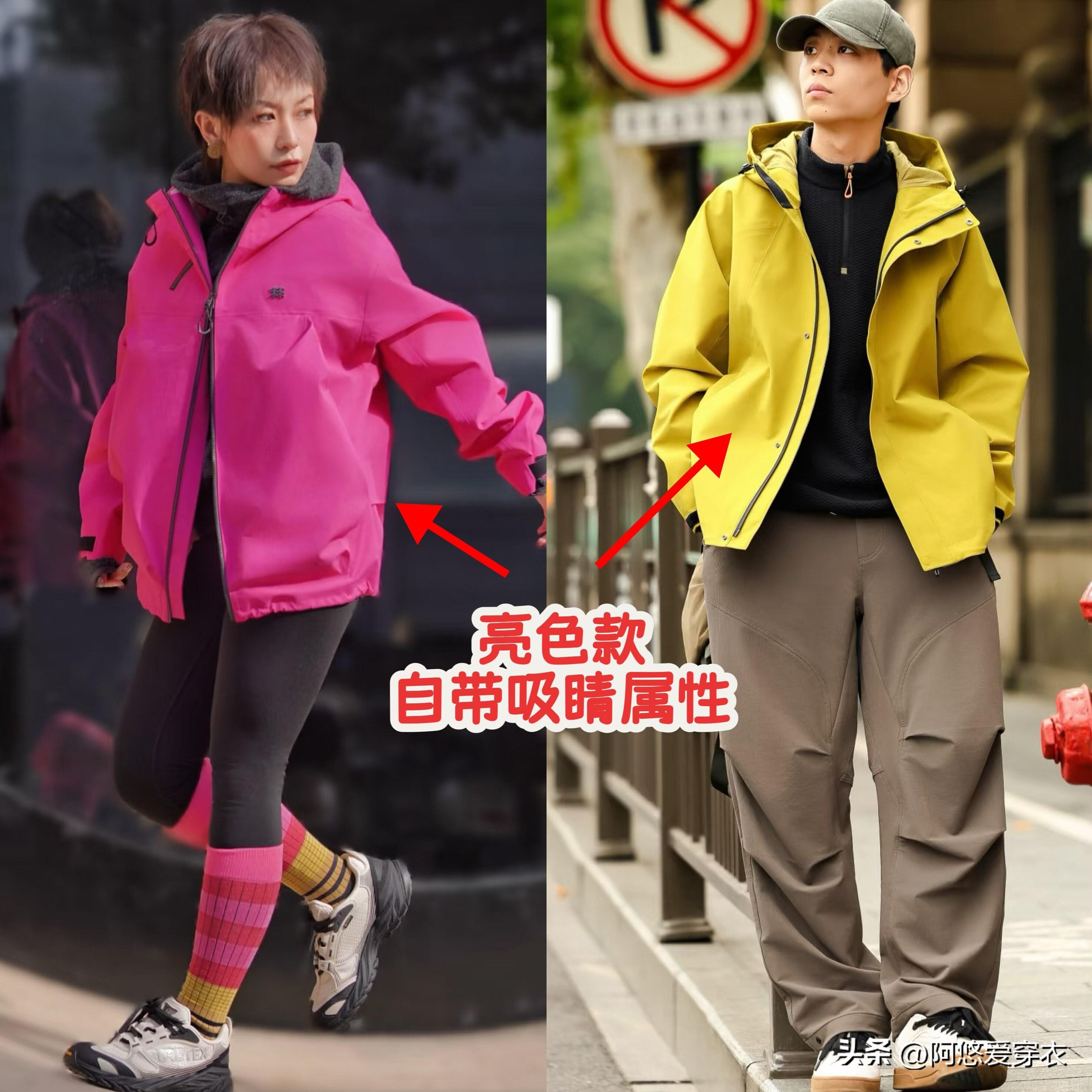 很多人買衝鋒衣只是盯着基礎色,要是你的衣櫥裏已經有了黑白色等基礎色系的款式,那不妨在今年給自己安排上彩色款,尤其是這些上海年輕人,穿各種靚麗的玫紅色、熒光色衝鋒衣,顯白提氣色,逛街回頭率特別高。