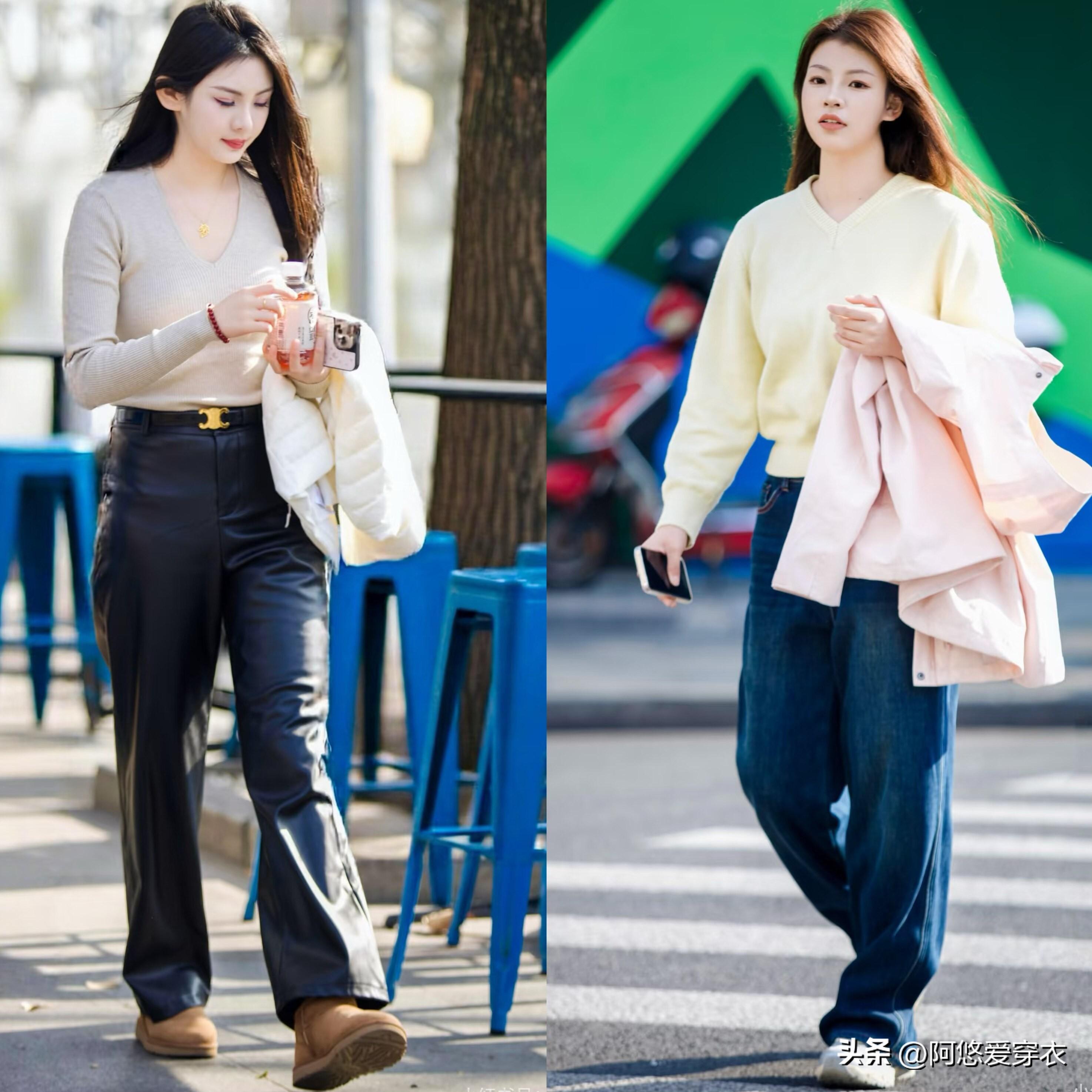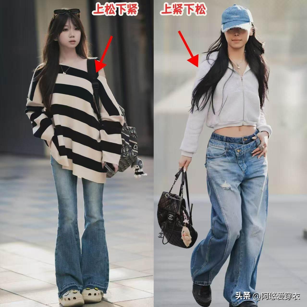 對於梨型身材和蘋果型身材的姐妹來說,全身穿的太緊或者太寬鬆都不合適,容易暴露身材缺點,咱們可以學習深圳姐妹的鬆緊結合思路,上衣若是選寬鬆的衣服,下半身就可以搭配略微修身的喇叭褲,上半身若是修身款,下半身就搭配闊腿褲來平衡一下,這種揚長避短的搭配思路適合大部分人。