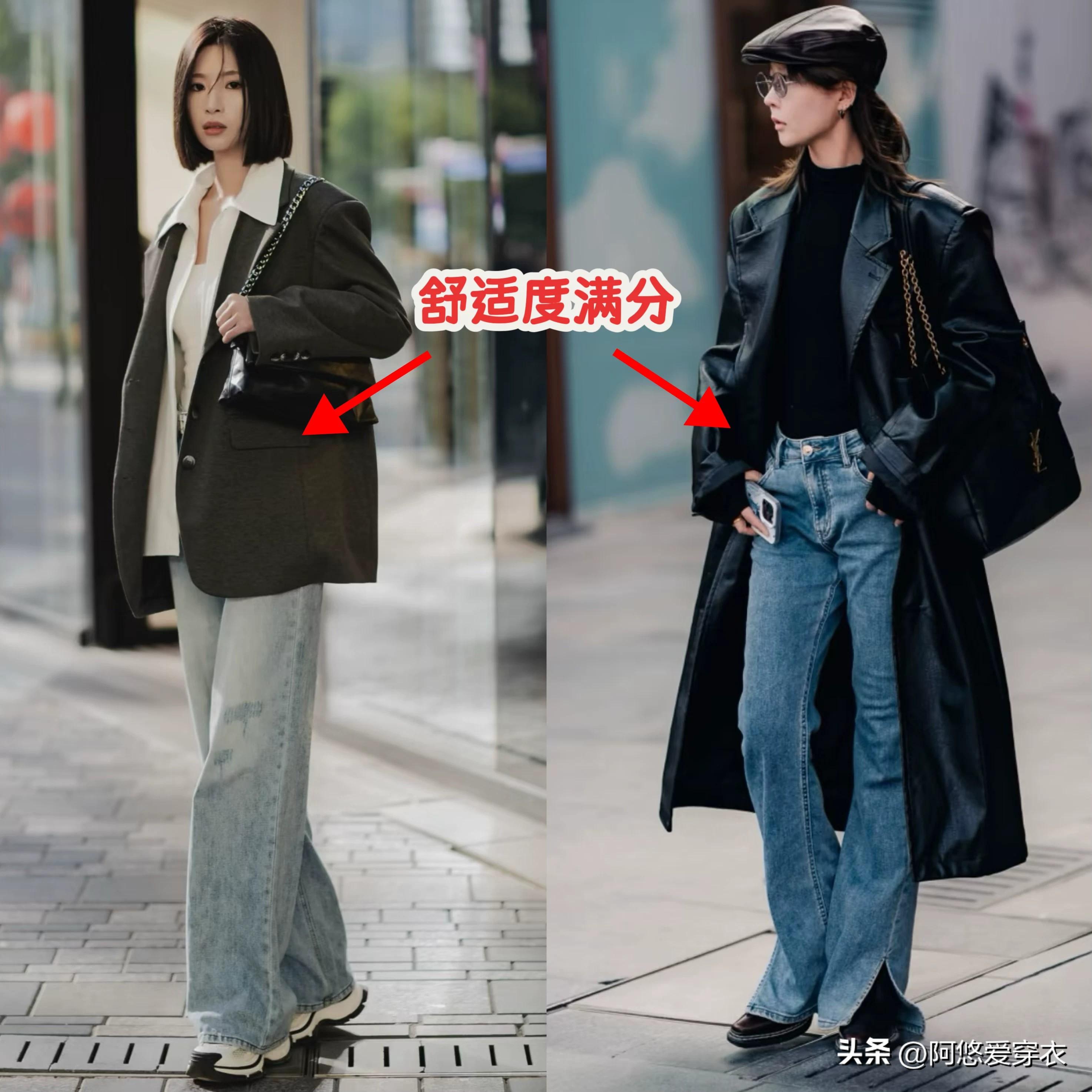 要說深圳街頭出鏡率最高的褲子,闊腿褲肯定是排名第一的,比起運動褲,牛仔闊腿褲的褲型更加利落,版型更加挺括;比起緊身褲,闊腿褲對身材的包容性也強多了,非常適合那些梨型身材的姐妹,幾乎不挑人,誰穿誰好看;而且深圳人本就特別看重穿搭的舒適感,牛仔闊腿褲剛好可以滿足她們的搭配需求。