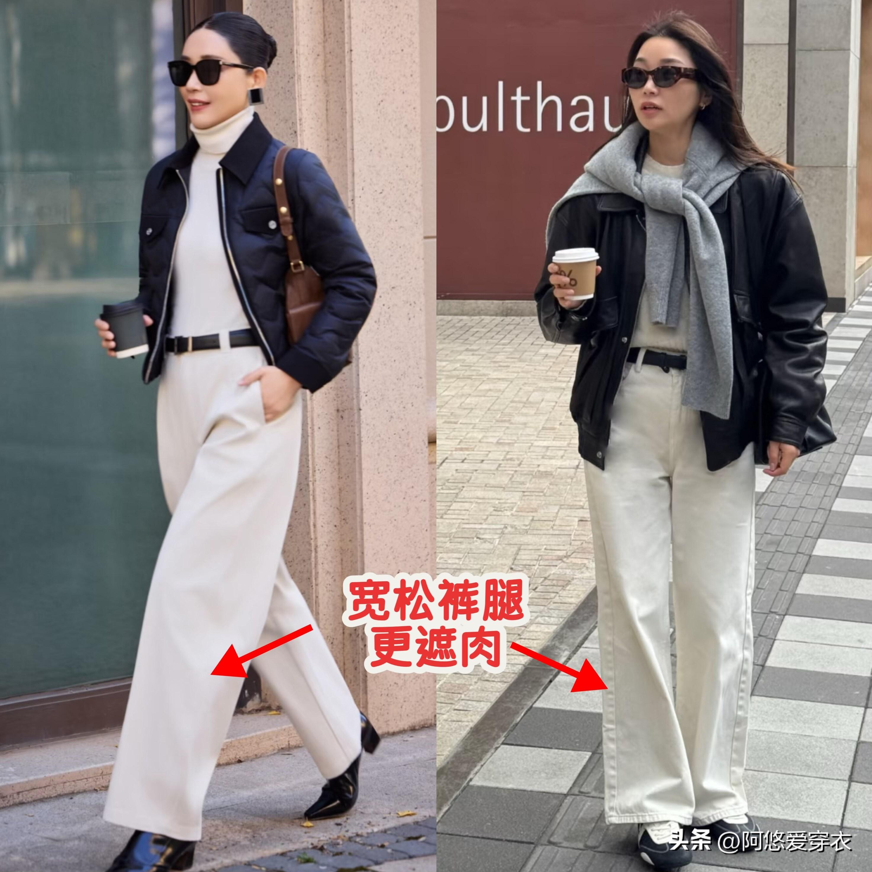 但褲型的選擇很重要,不能選太緊身的版型,直筒小白褲或者闊腿款的小白褲更顯瘦哦。