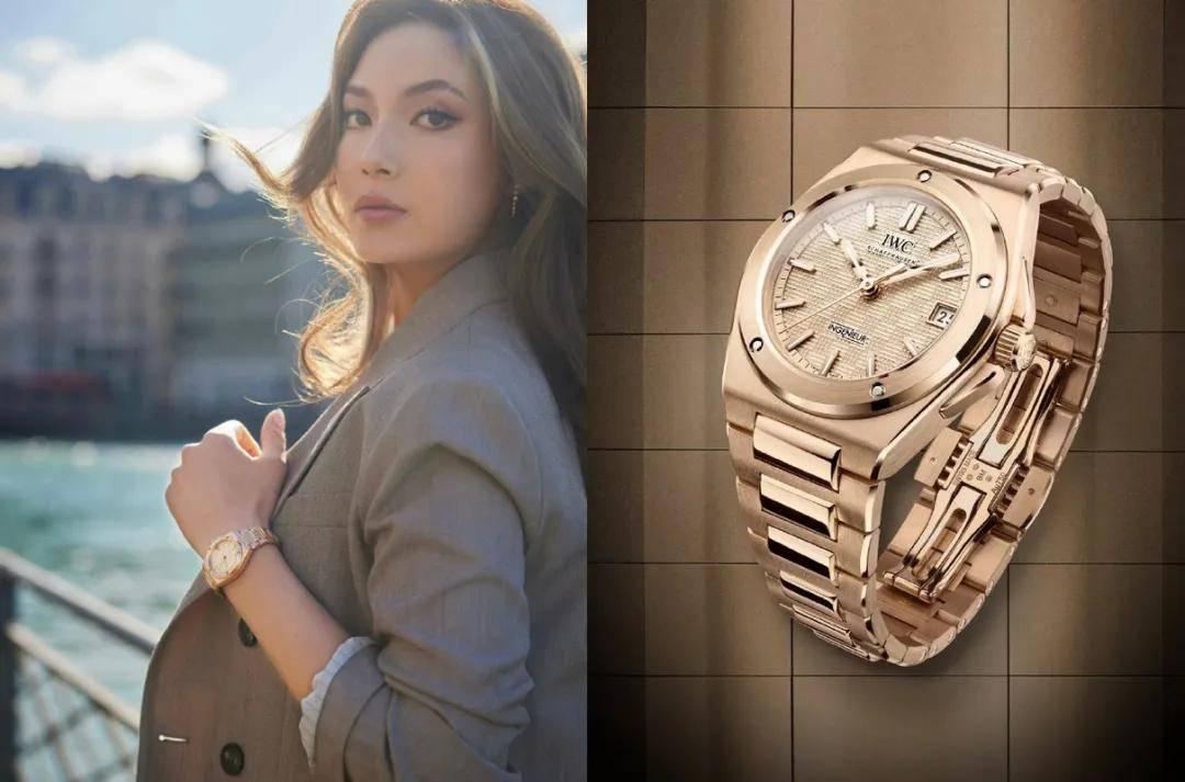 一金二銀收官冬奧的谷愛凌,在領獎臺上選擇了IWC萬國表工程師系列自動腕錶35。玫瑰金錶殼搭配金色網格紋錶盤,與她胸前的奧運金牌交相輝映。