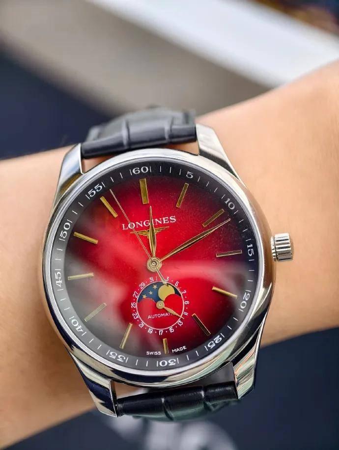 而在遼寧春晚騎馬驚豔亮相的於適,則選擇了浪琴錶名匠系列月相腕錶馬年生肖限量款。漸變赤焰紅色的太陽紋盤面非常有活力,颯爽形象與馬年主題簡直太匹配。