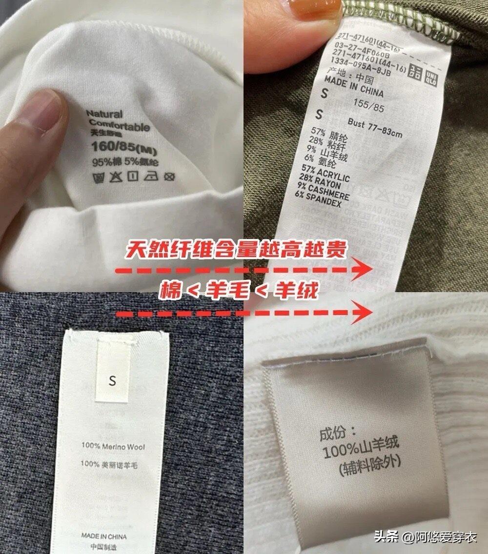要是你不知道怎麼判斷,最好的辦法就是看衣服的水洗標籤,上面會明確標註衣服的面料含量。