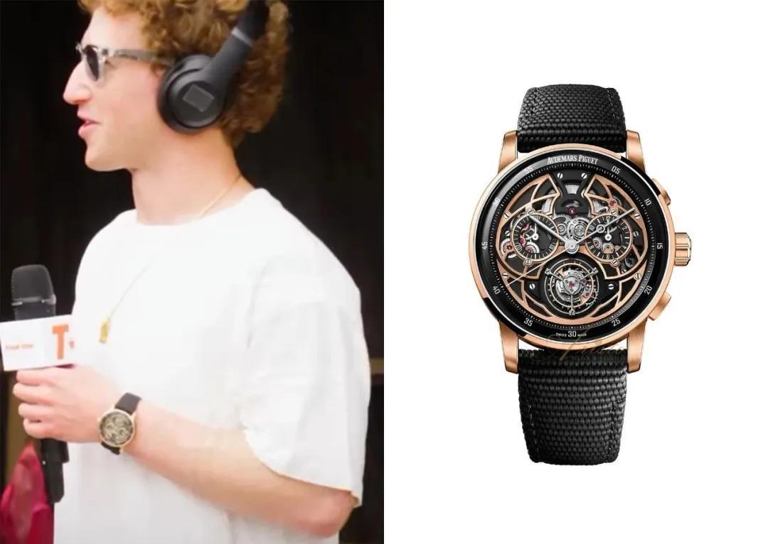 還秀過愛彼CODE 11:59自動上鍊飛行陀飛輪計時碼錶,黑金外形十分酷炫,限量50枚,價值約20萬美元,也是真懂行的表哥纔會擁有的高階收藏款。