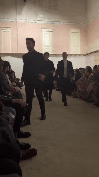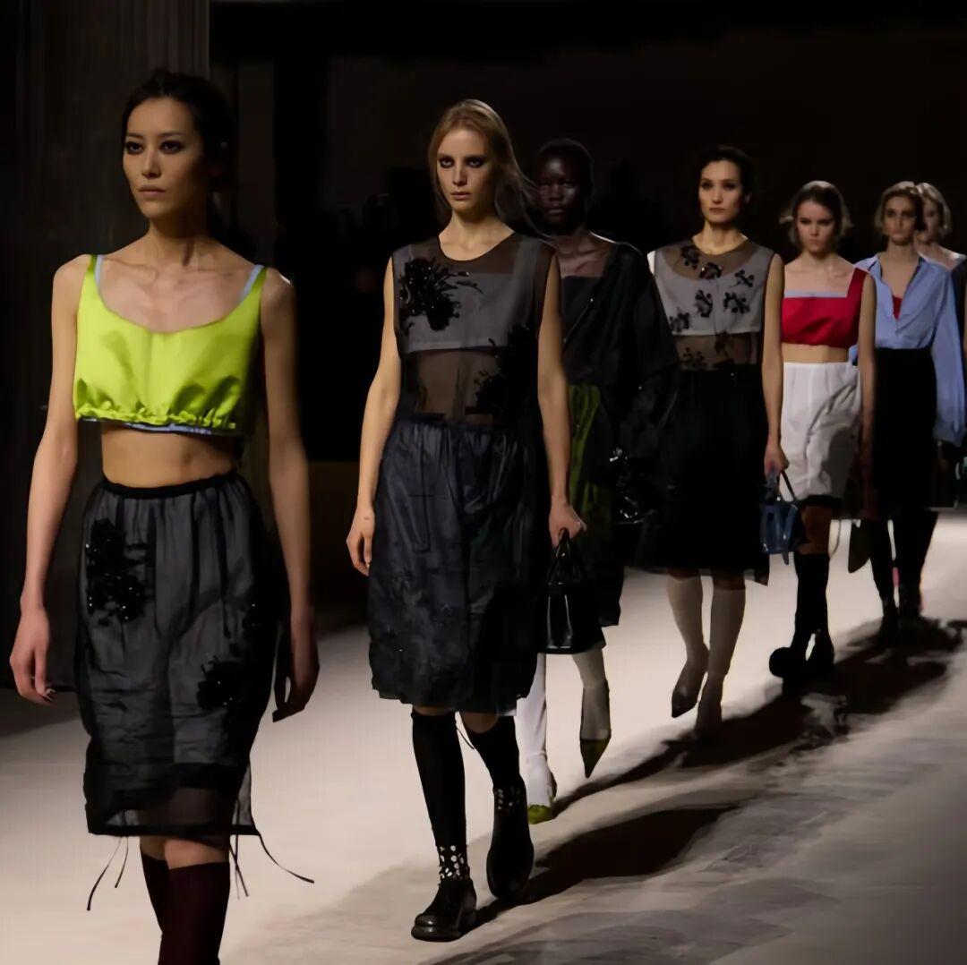 這場秀本身也很能打,繆姨和Raf Simons這次只用了15位模特,卻呈現了60個look。每位模特走4次T臺,通過層層疊穿和拆解展示不同look,被媒體評價爲“近年來最有形式感的系列之一”。