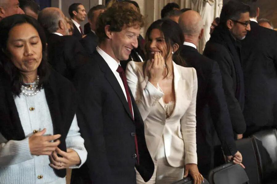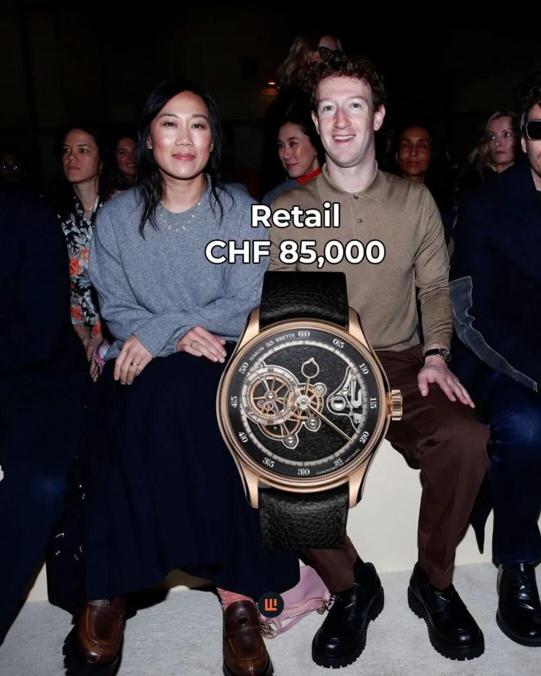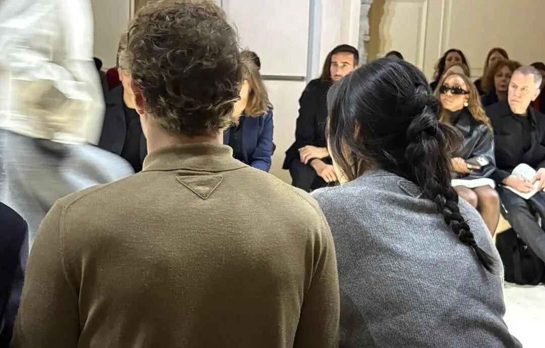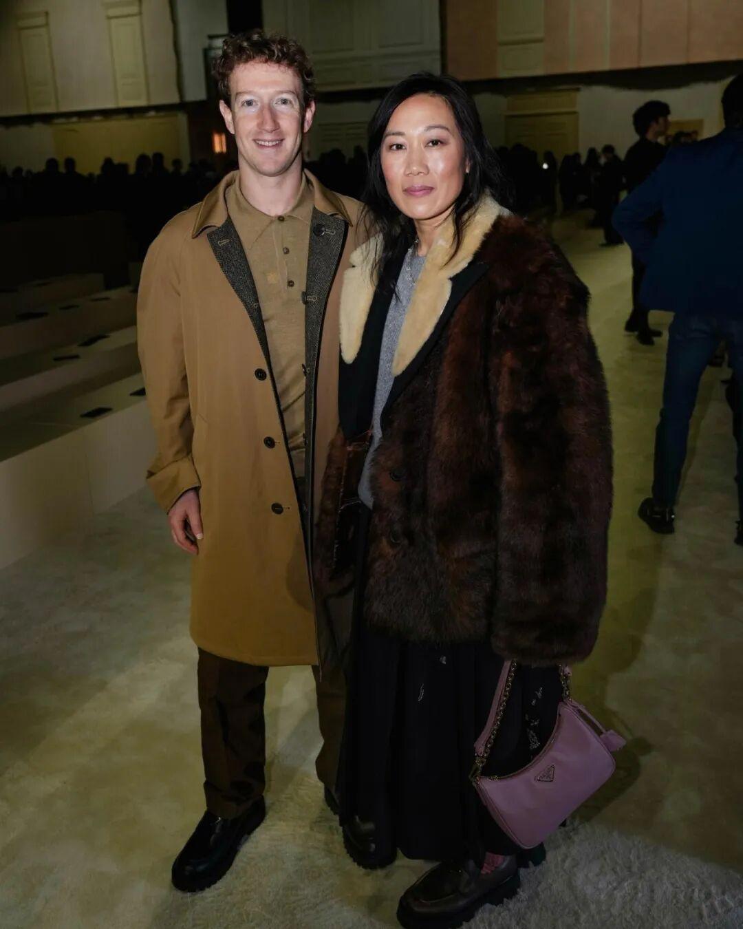 看秀時,扎克伯格換上筆直坐姿,比上聽證會還認真。更逗的是普利希拉還給老公講解T臺上的疊穿細節,像極了“老婆帶老公逛街買衣服”,兩人腳上還穿了同款情侶Prada樂福鞋。