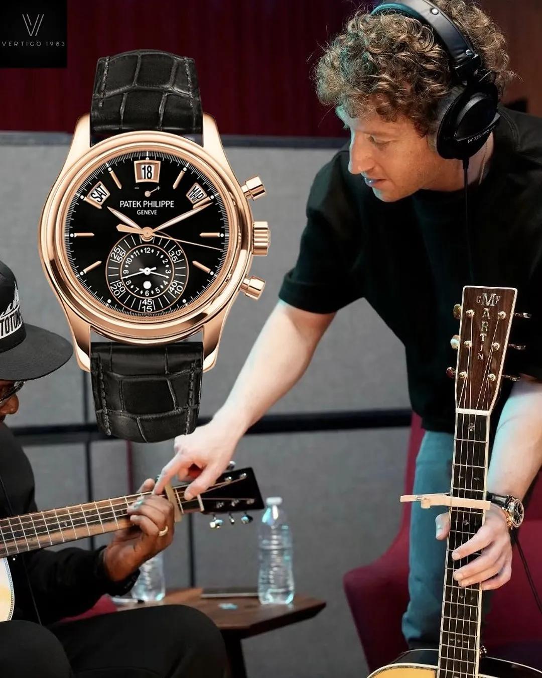而和美國歌手T-Pain合作做音樂時,腕上又赫然出現一枚百達翡麗5961R年曆計時碼錶,還是已經停產的錶款,依然是黑金配色+複雜功能,每一塊都讓資深表迷垂涎不已。