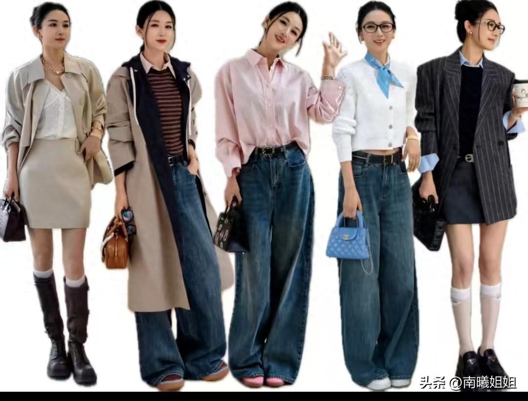 薇婭用卡其色西裝內搭類簡約白T或同色系毛毛外套搭長筒靴,或配寬鬆牛仔褲……西裝的板正和牛仔褲的鬆弛形成微妙對比,不但不老氣,而且日常出門很有腔調。