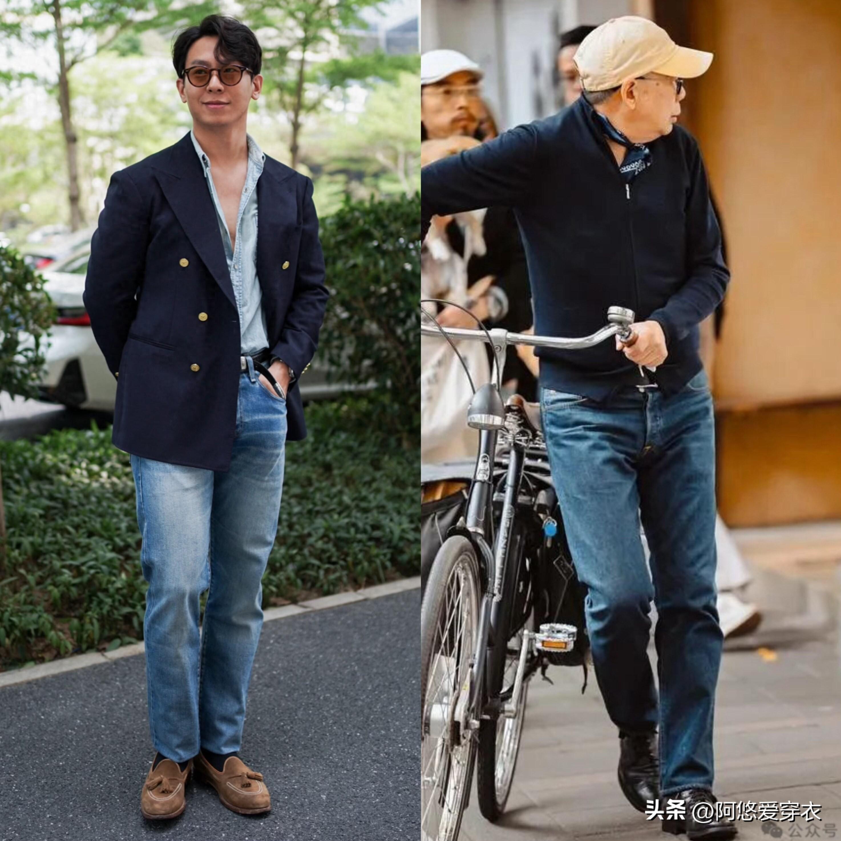 牛仔褲穿出時尚感,最重要的就是看版型,太緊身的褲型穿在身上勒得不舒服,太寬鬆的穿在身上拖沓累贅,都會影響我們的身材,最適配大部分中年男人的是直筒褲或者煙管褲型,這種利落的褲腿對腿型的修飾效果好,一般人都可以駕馭。