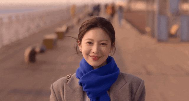一抹克萊因藍圍巾點綴其間,
