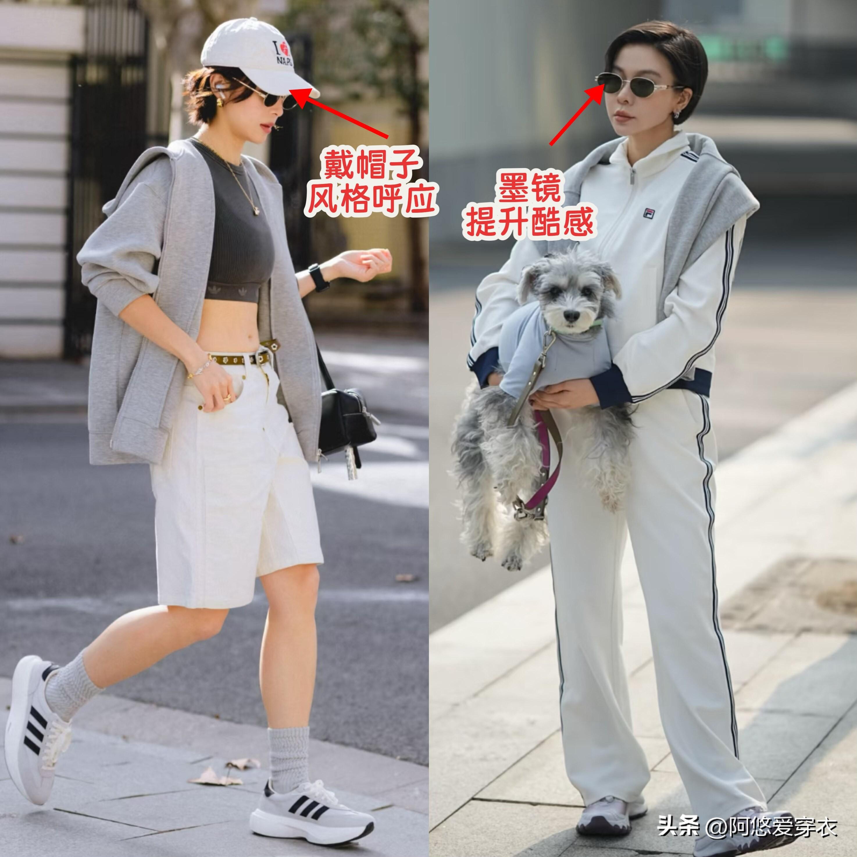 這兩年,街頭穿運動風單品的時髦精越來越多,想要把運動穿搭演繹出不一樣的感覺,那麼大家可以試着搭配一些配飾,比如戴帽子,墨鏡等等,和穿搭的風格相互呼應,瞬間就可以增加潮酷感。