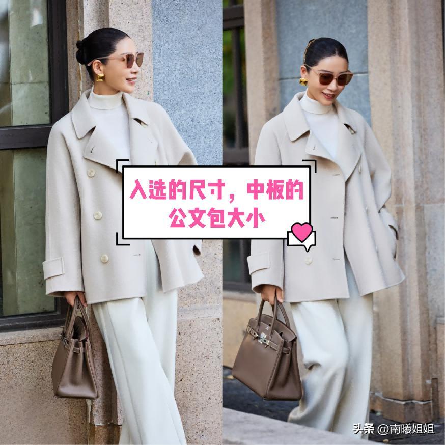 建議屏幕前的各位女性,如果要入手公文包的話,那麼我們其實可以挑選兩個尺寸,第1點的話則是中款的設計,看起來的時候不管是與什麼樣的職場穿搭來進行組合都非常的和諧,也不會有任何的沉悶和壓個子的感覺。第2種的話則是偏小號一點的,這樣的搭配其實在運用起來的時候會更加的精緻顯年輕一些,千萬要拒絕到那種很大的設計。