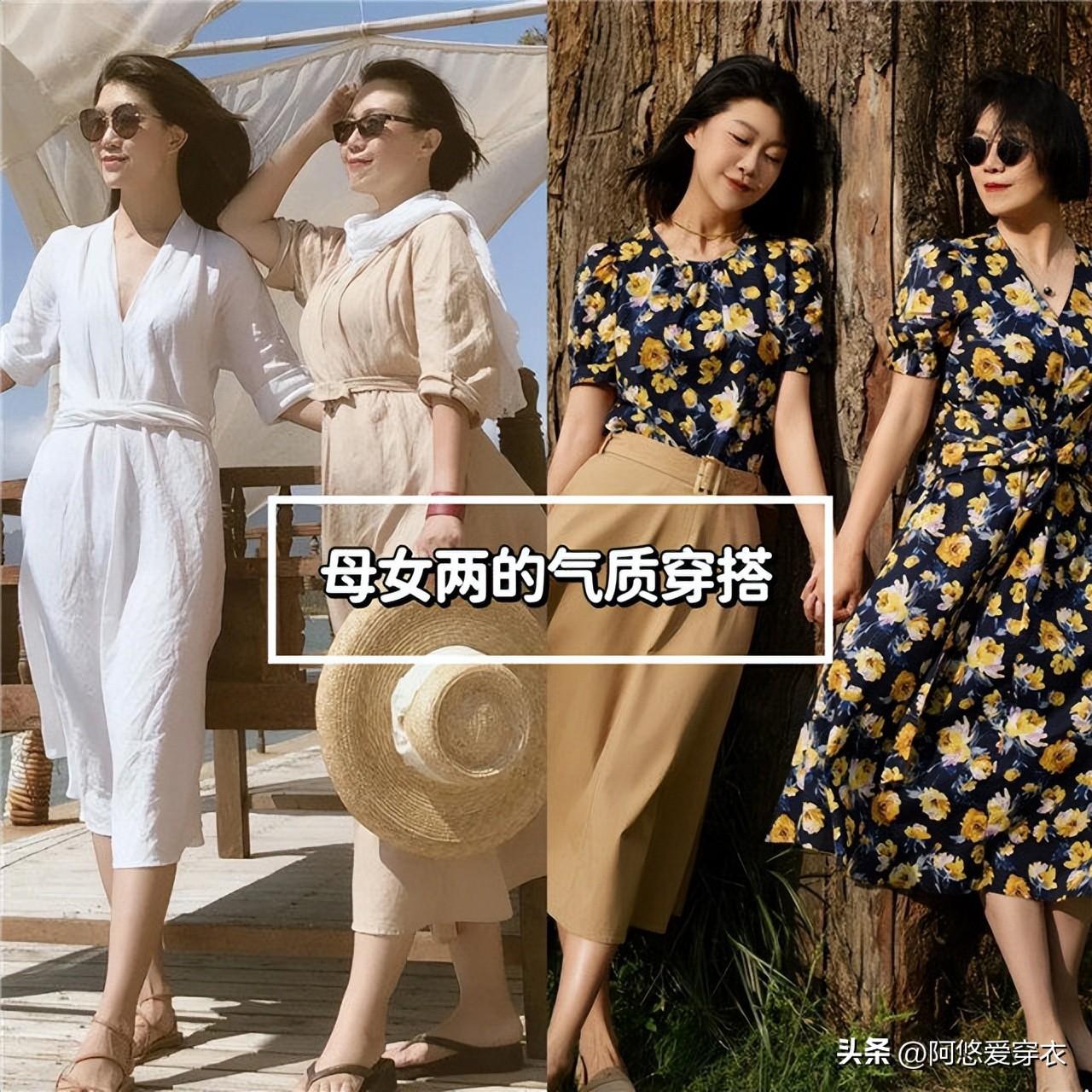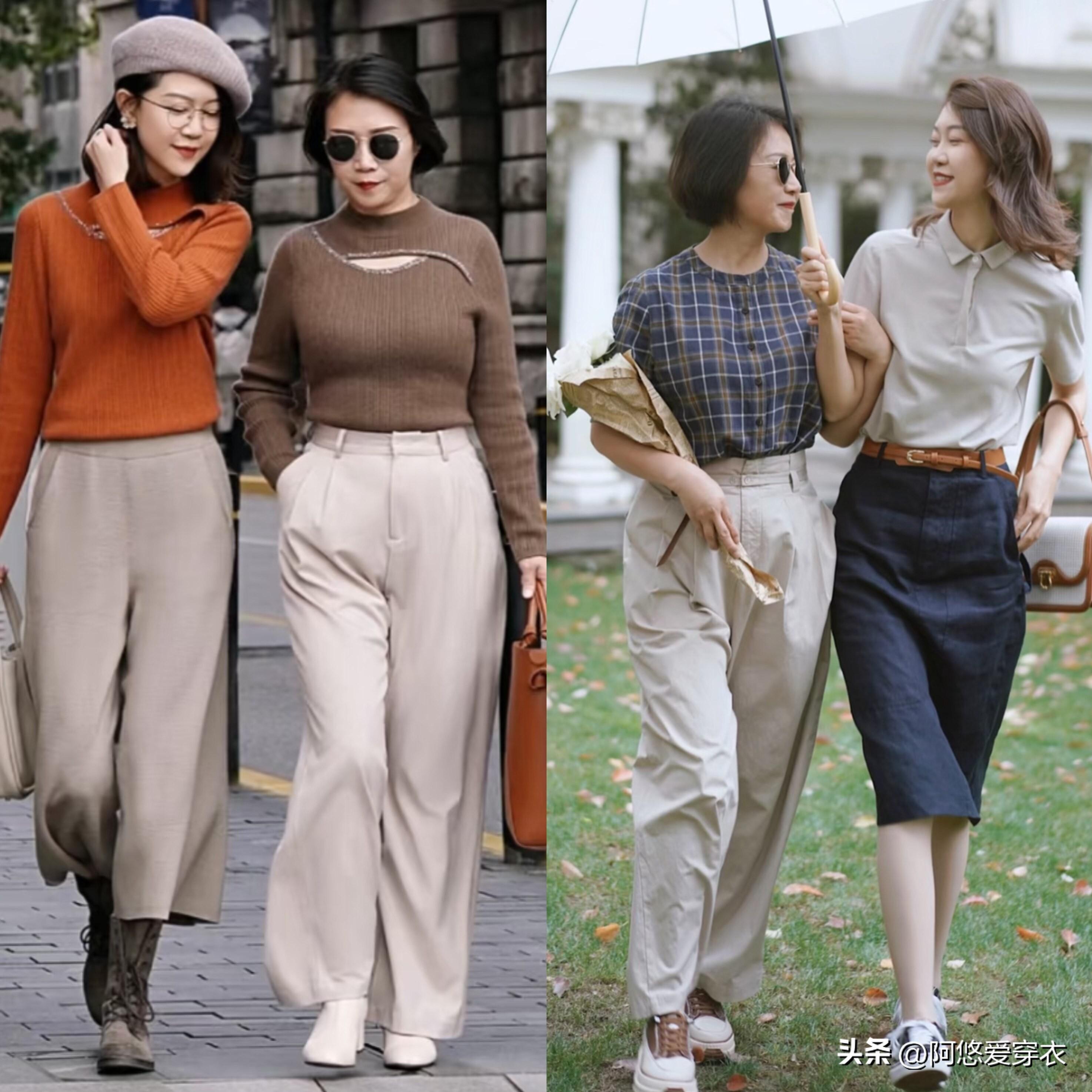 再看這對母女的搭配,雖然衣服都是基礎款,可人家穿的衣服質感是真的很好,純棉、羊絨、雪紡材質都很適合這個季節,舒適透氣不悶熱,跟聚酯纖維和化纖的衣服一對比就知道了。