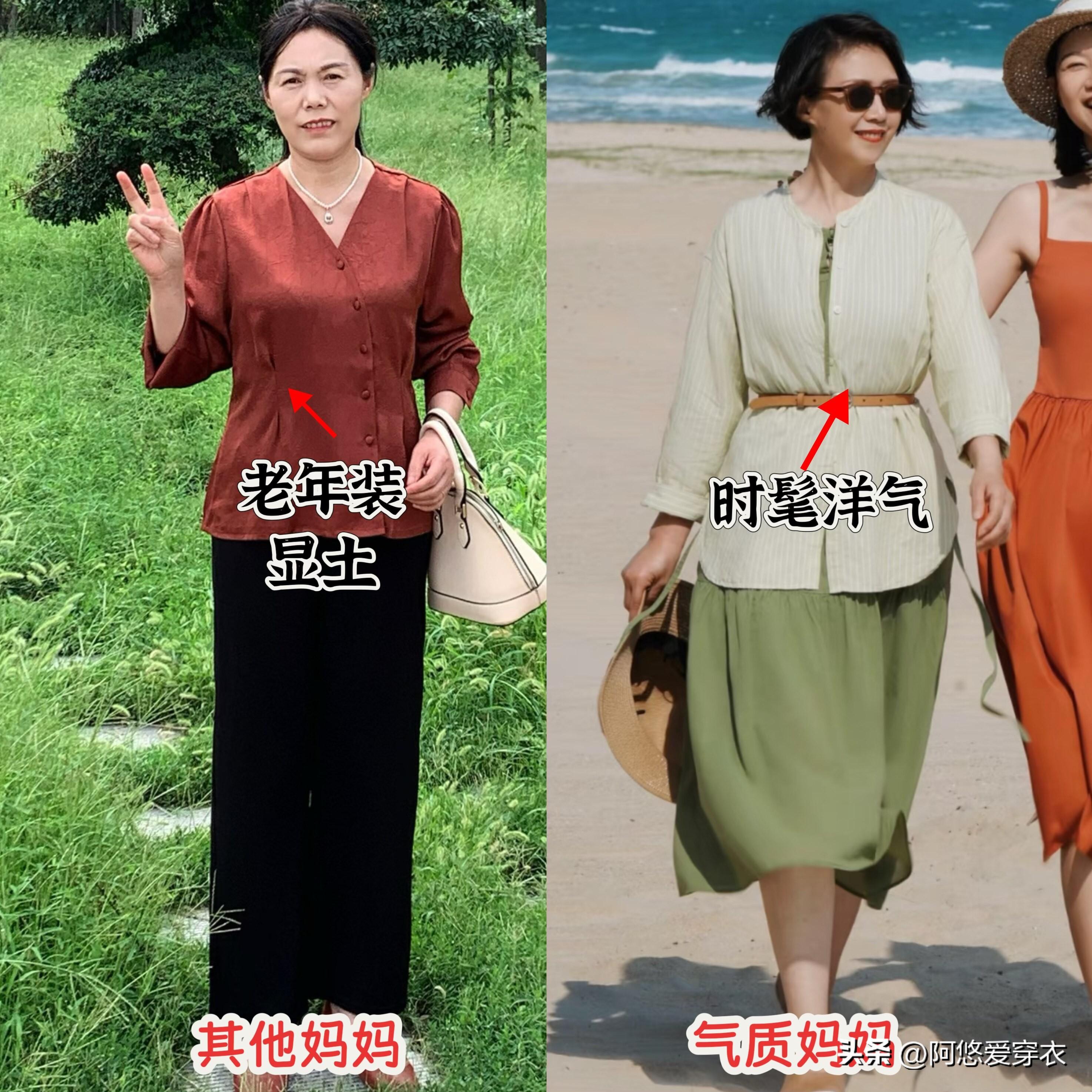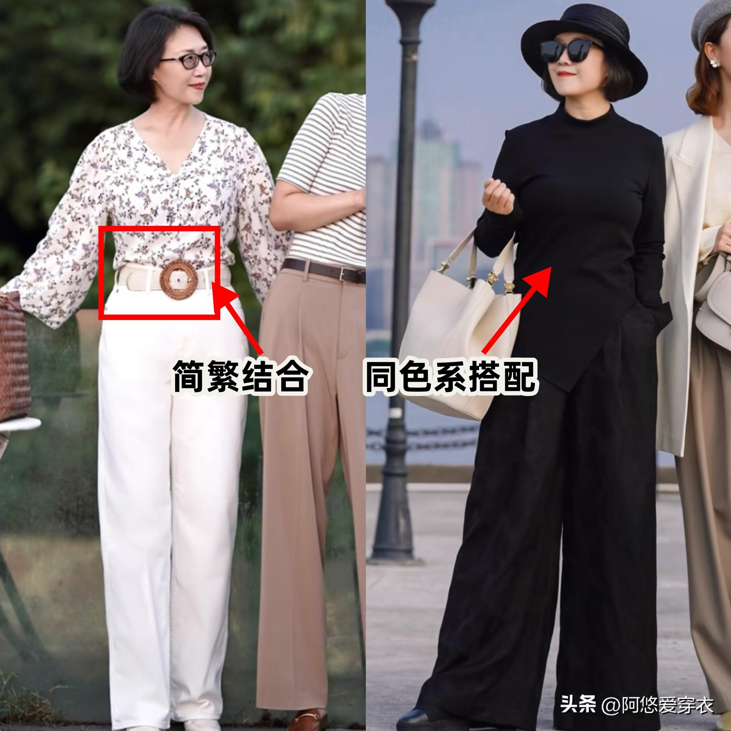 而且很多中年女人都是在亂穿衣,特別是日常出門遛彎的時候,隨便買一件老年裝,搭配的時候不考慮整體的風格,衣服、鞋子、髮型都是隨意捯飭一下就出門,再看這個媽媽的打扮,從穿的衣服、褲子到鞋子,風格之間都是有呼應的,再搭配時髦的配飾,細節中都可以看出她的精緻感。