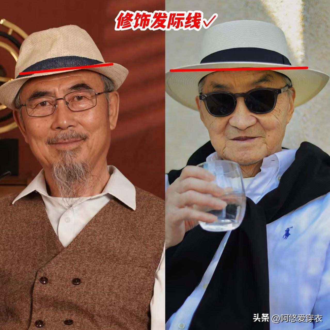 如果沒有找到合適的髮型,覺得自己的髮際線高、顏值一般,那麼我們還可以試着戴帽子暫時拯救一下,特別是寬檐帽,對臉型有不錯的修飾效果,還可以蓋住後移的髮際線以及白髮。