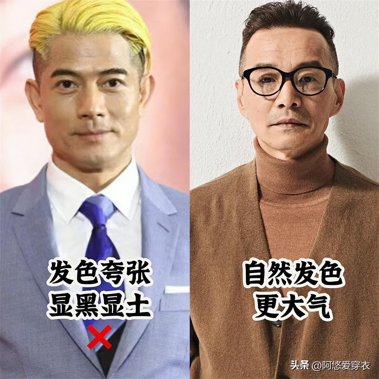 不少男性除了糾結髮型選什麼,還糾結要不要染髮,特別是看到自己的頭髮變白了之後就焦慮,但我勸你不要盲目染髮,特別是誇張的髮色千萬不能染,會顯得很違和,反倒是拉低氣質,更推薦你們嘗試自然的髮色,要麼不染髮,要麼就染黑色或者深棕色。