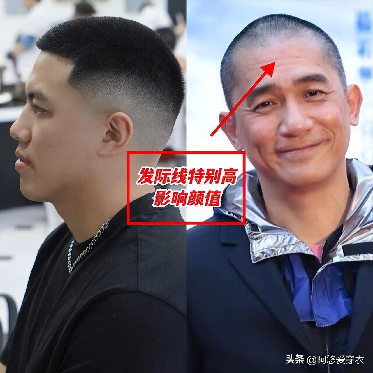 而且男人年紀大了,髮際線也會跟着往後面移,這個時候剪寸頭,咱們高高的額頭會完全暴露出來,正面看着實在是太不協調了,沒有了髮型的修飾,顏值立刻就會下滑好幾個檔次,再配上中年發福的臉,活脫脫一個油膩大叔。