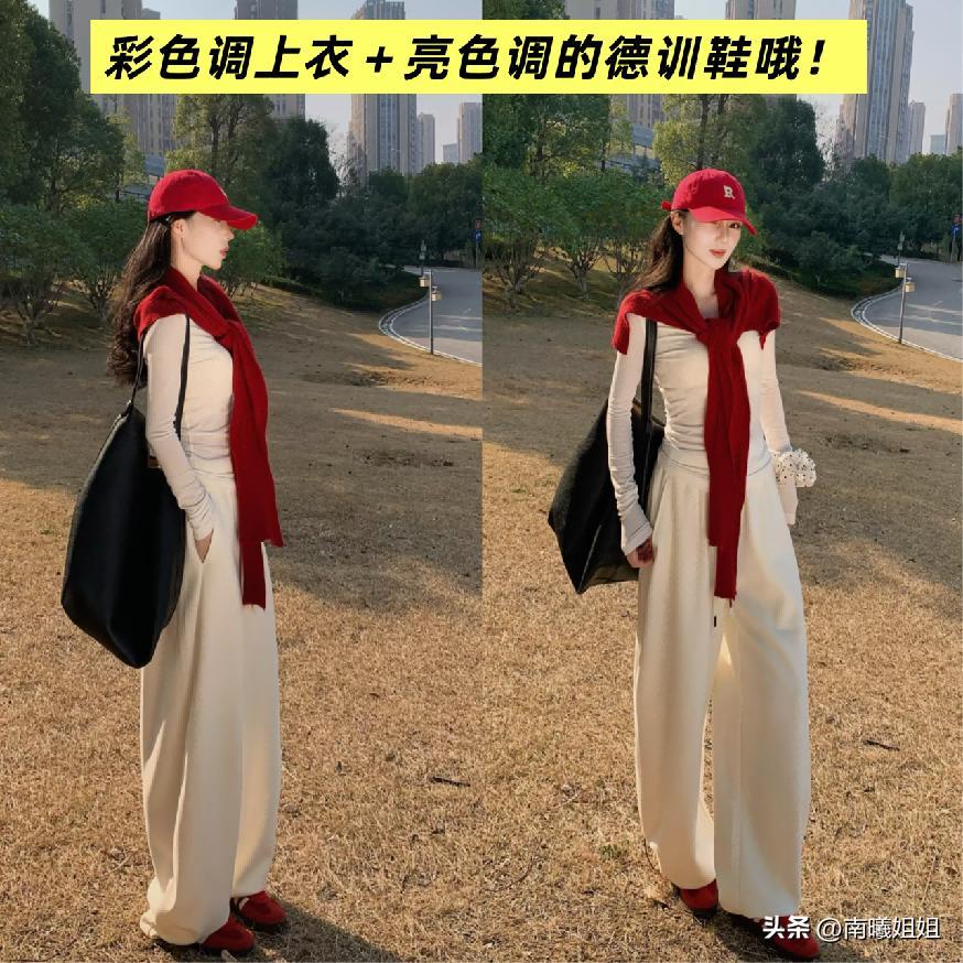 ㈠最常見且最好駕馭的『德訓鞋+闊腿褲組合』