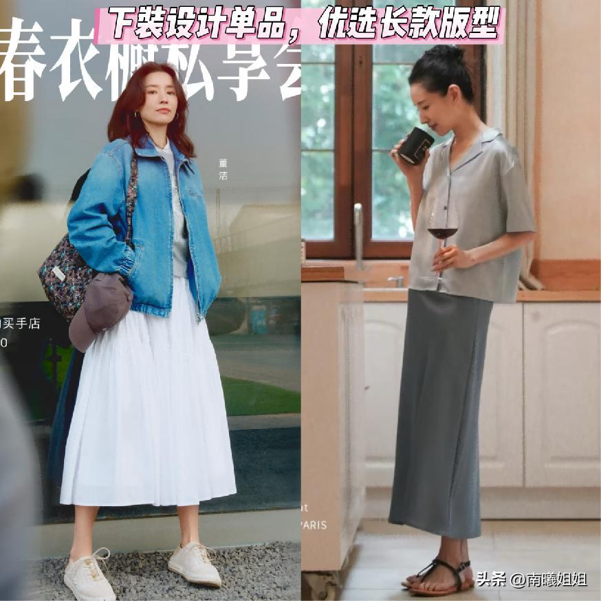 在上了年紀之後,也建議大家下半部分的單品可以學董潔的直播間一樣,優先於運用長款的設計狀態,會更加的修飾我們的身形走向,而且其實四五十歲的時候,長款的褲裝或者是裙裝不僅能夠優化我們身形的走向,最主要的是襯托出來的氣質也更加的優雅得體,對於這這個年齡階段的女性而言這樣的呈現效果還是比較重要的喲。