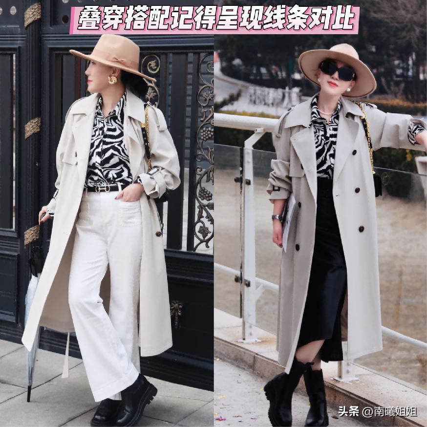 當然了,如果要疊穿一些外搭單品,例如像風衣和西裝系列的話,那麼大家儘量是能夠將鬆緊的對比效果進行體現的,尤其是偏向於長款的外搭單品是屬於直筒且寬鬆的設計,內搭的話偏向煙管的利落感走向,這樣在視覺上的對比效果能夠體現盡情展現我們身形的優勢,避免不足的暴露。