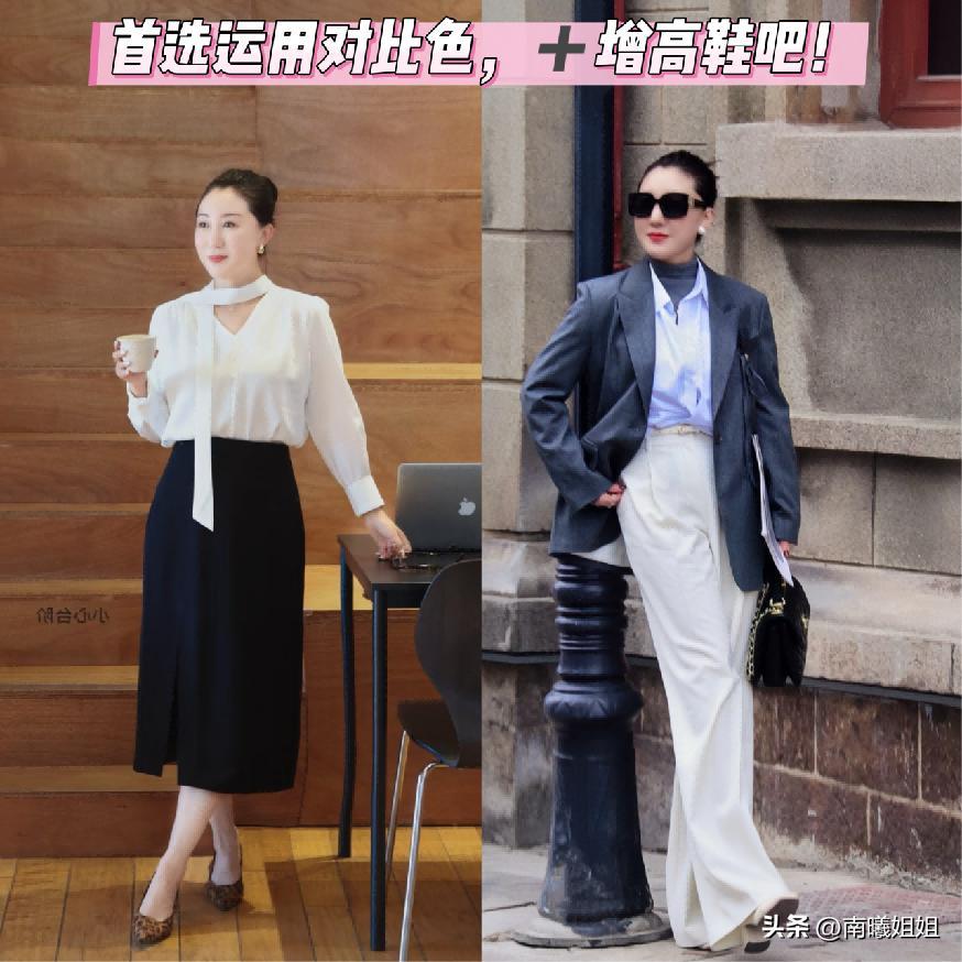 如果你的組合搭配的最終目的是爲了將標準的比例進行強調體現的話,那麼也建議大家不妨可以適當的優先於選擇對比的色系來進行組合,以及這樣的穿搭效果當中,很適合將高跟鞋或者低跟鞋這樣的鞋子結合在其中,增高的同時也能夠優化我們整個下半部分的比例優勢。