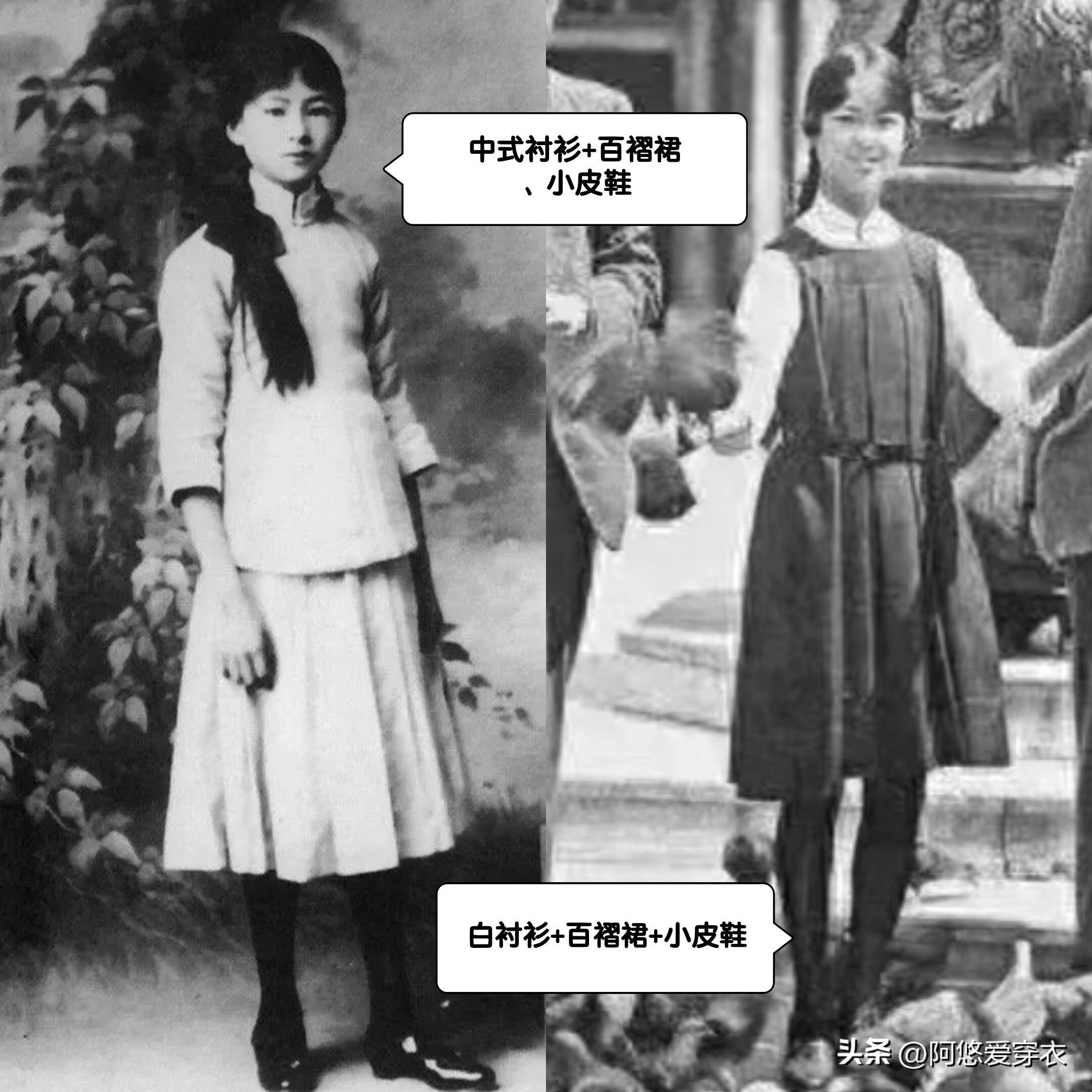 她少女時期就喜歡穿民國時期的圓領襯衫配一條過膝百褶裙,搭配上同色繫帶跟的小皮鞋真的簡單又元氣,完全就是那種清純不做作的少女感啊!