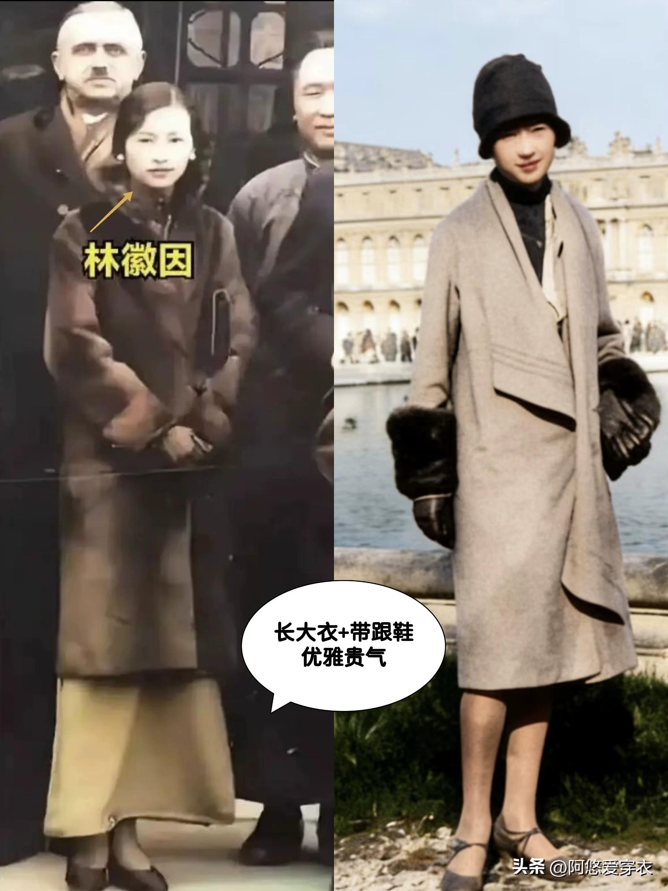到了中年時期林徽因就不再追求什麼少女感了,而是用長款大衣、過膝長裙等優雅的單品去放大身上的女人味,我覺得這個時候的她比年輕時還好看。