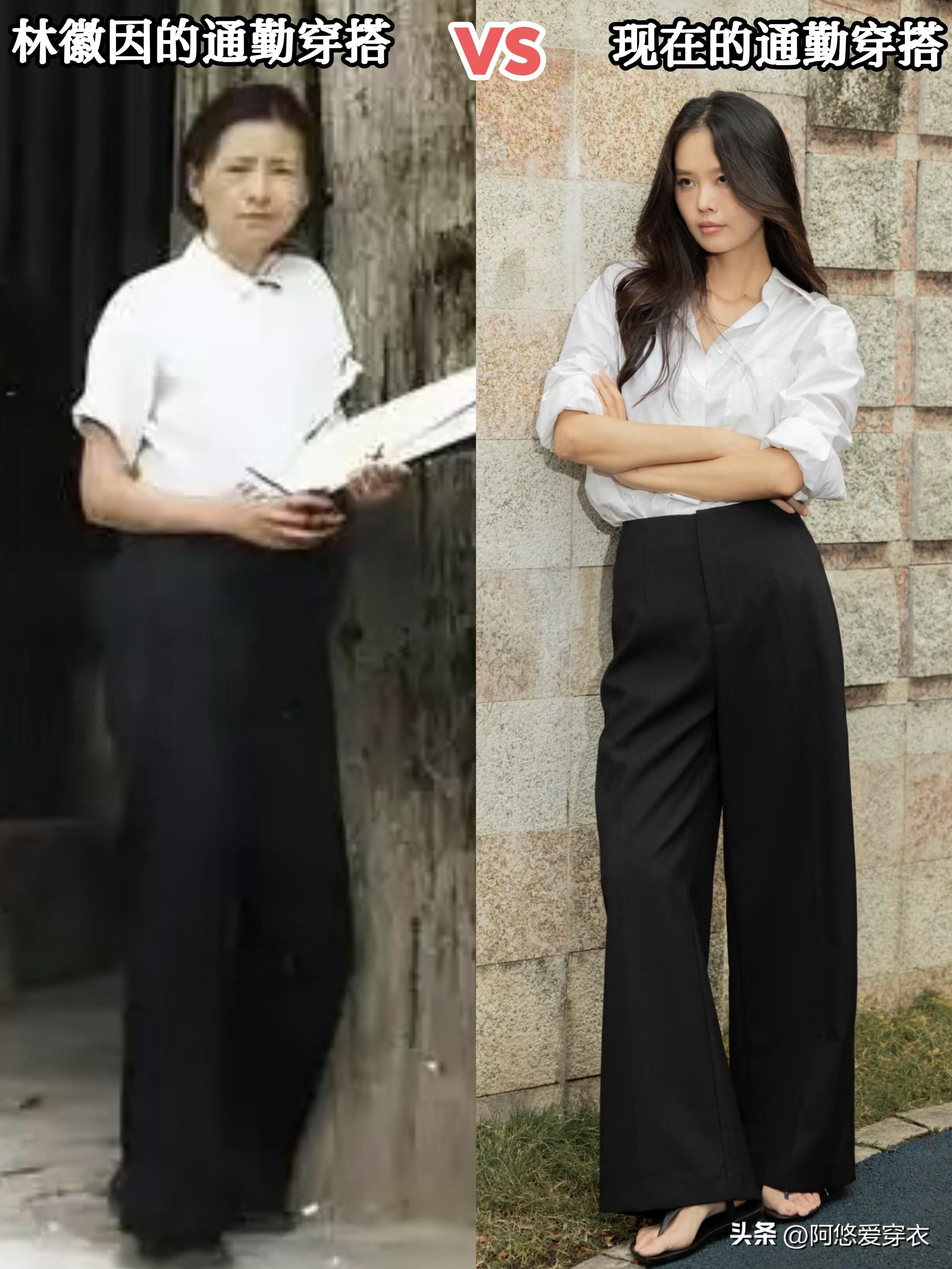 而且我們費盡心思營造的時尚感,林徽因隨隨便便一穿就有了,就像她穿着去戶外科考的這身白襯衫和西裝闊腿褲,現在也是很多都市麗人上班通勤的戰袍,完全不過時!