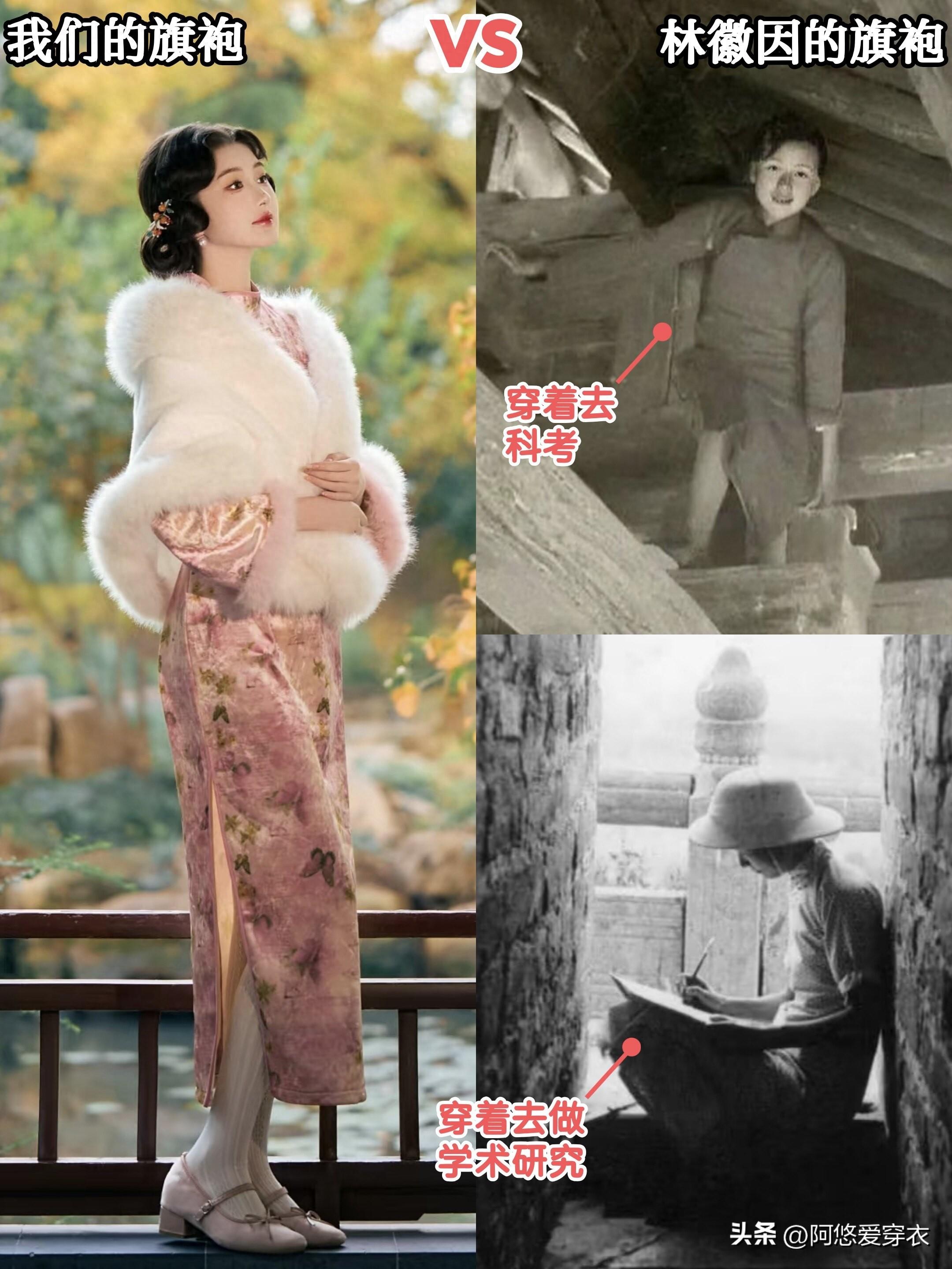 要我說,林徽因真是咱們女人中的女人!我們平時穿旗袍大多都是追求一個優雅精緻,穿着出去美美擺拍的比較多。而林徽因倒好,穿着她去爬房梁、搞科研,真的不一般。