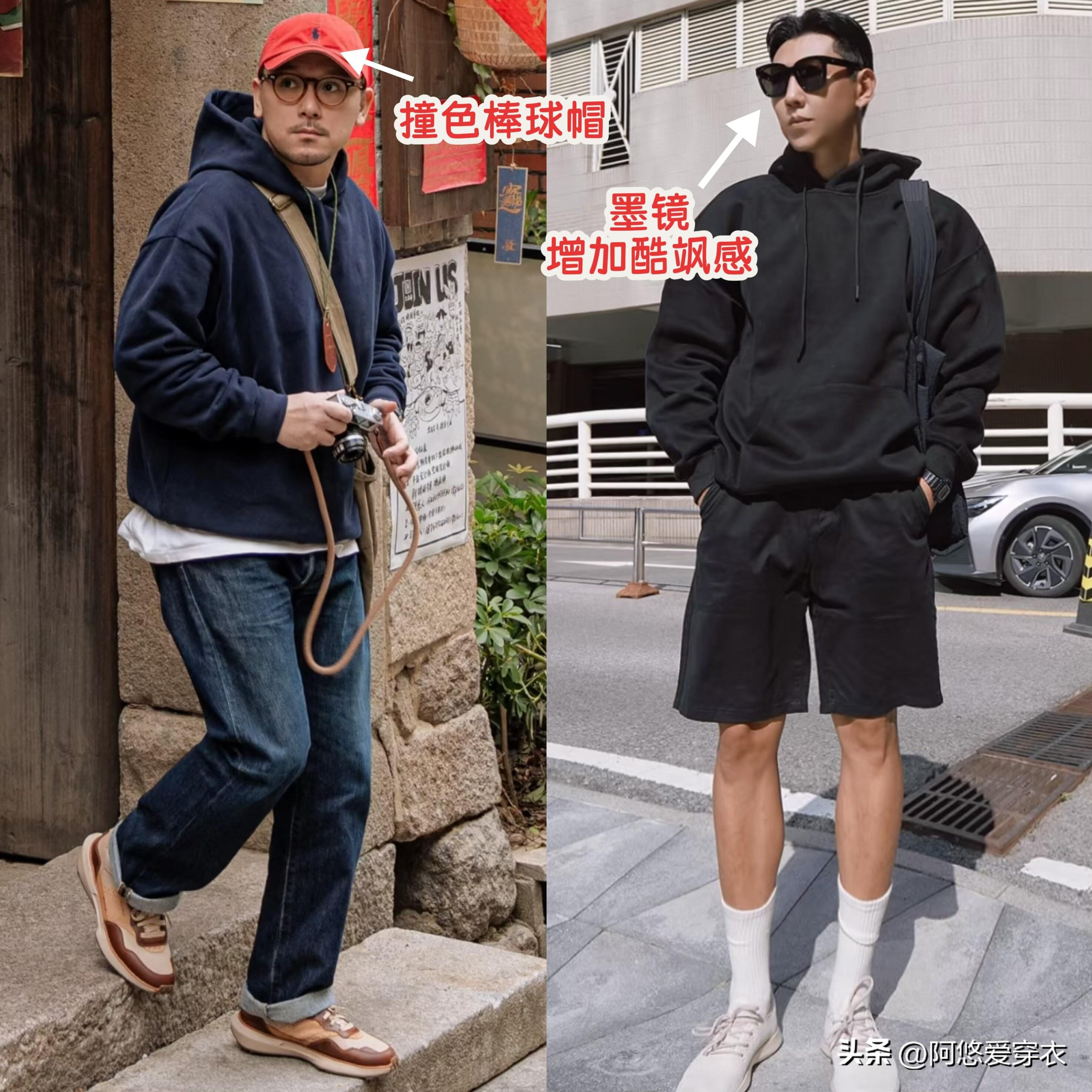 這兩位大叔們的衛衣穿搭爲什麼時髦?離不開配飾的加持,哪怕是戴一頂帽子,搭配一款時髦的黑色墨鏡,都可以讓他們的衛衣搭配瞬間變得不一樣,打破了單調感不說,還可以豐富整體造型,提升層次感。