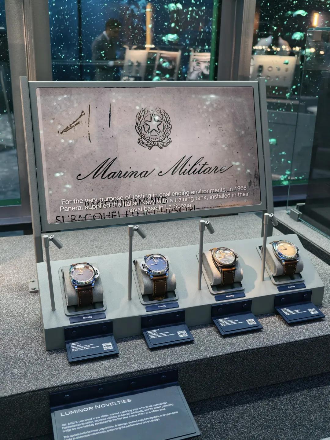 最重磅展品當屬這座“超大透明水池”,它復刻的是1966年沛納海打造的潛水訓練池,在展廳中央像個巨無霸,特別威武。