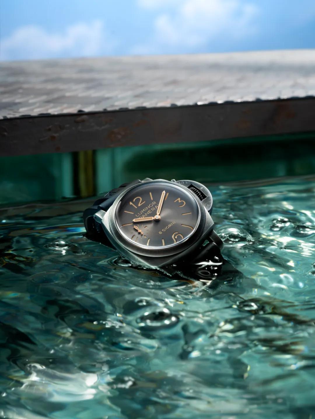 那種如同翻湧海浪和天然岩石的紋路,還與沛納海的海洋淵源遙相呼應。而將材料科學與自然張力結合的做法,正是沛納海材質哲學的最高級表達。