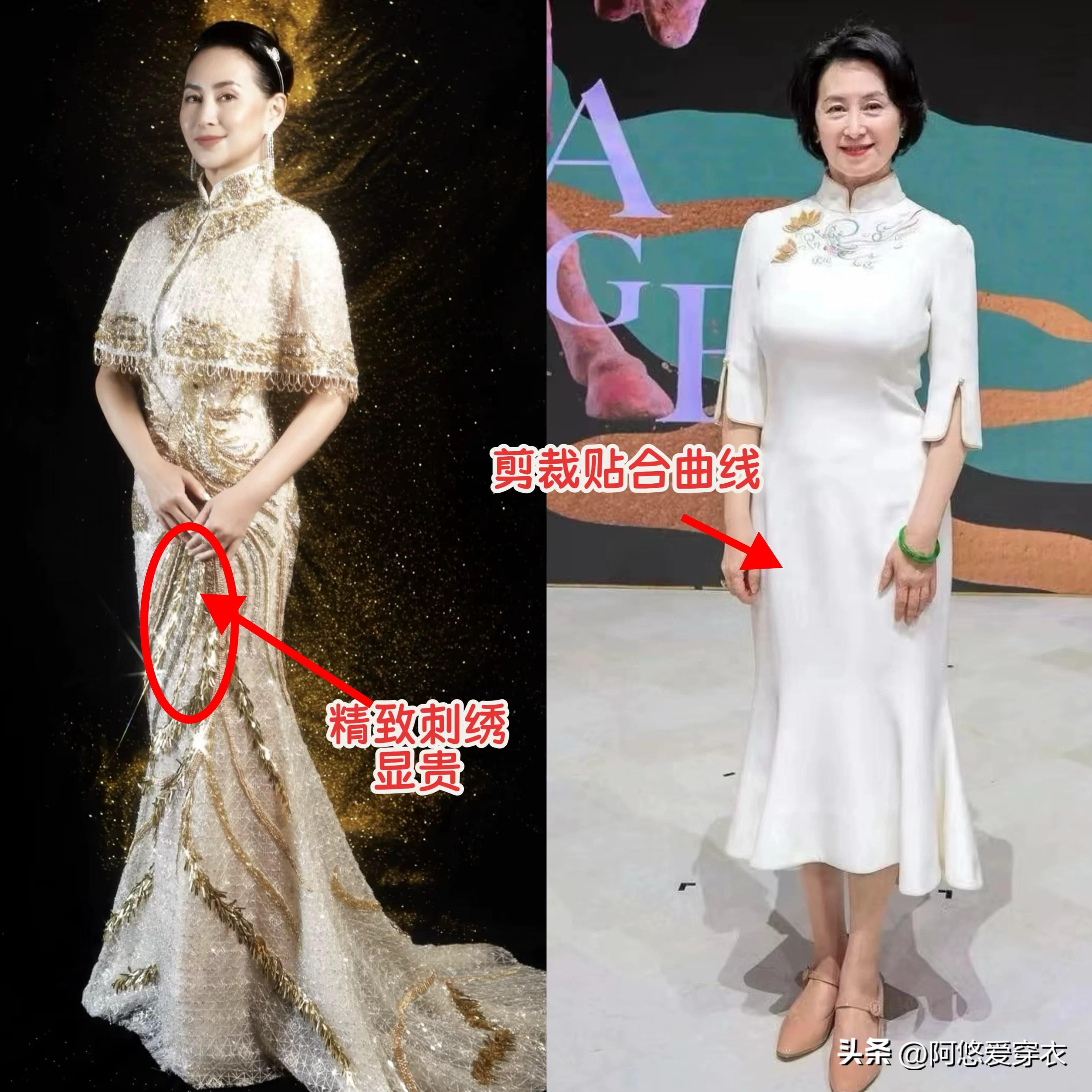 可何超瓊穿的新中式老錢風旗袍,精緻的刺繡一看就很重工,再加上剪裁完全貼合她的身材曲線,沒有一絲緊繃,也沒有鬆垮感,直接把 “低調奢華” 演繹到極致。