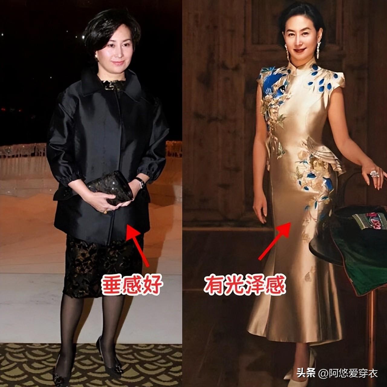 在面料上更不能含糊,何超瓊在選衣服的面料時也十分的講究,她非常喜歡選擇優質的真絲和緞面材質,這也是老錢穿搭的首選面料,因爲這些材質都有淡淡的光澤感,穿在身上自帶貴氣,再加上垂感也很好,就算沒有其他多餘的裝飾,也能很好的展現出舒展大氣的狀態。