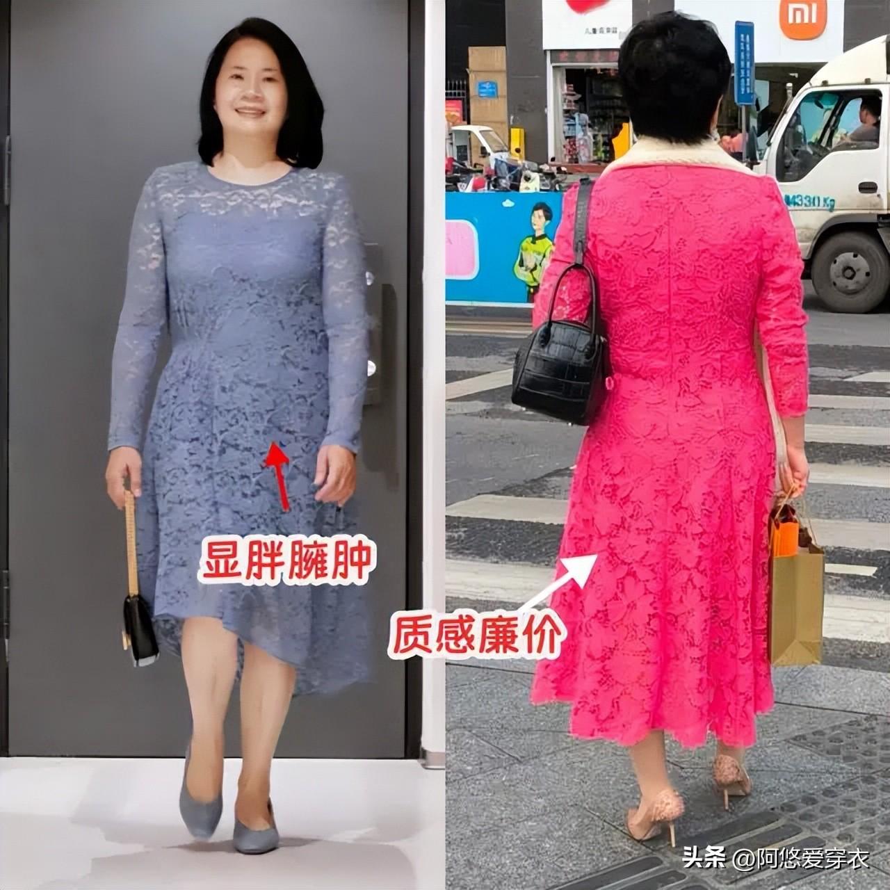 更重要的是,很多中年女人穿的蕾絲連衣裙特別的廉價,蕾絲容易勾絲、起球,立馬就讓你穿出 “中年油膩感”,一點都不高級。