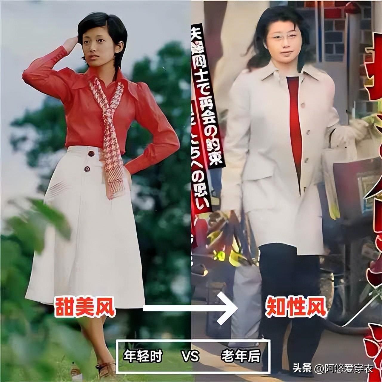 而老了之後的她經過了沉澱,氣質變得成熟,穿衣打扮則開始偏向於低調沉穩的風格這也告訴我們,要提升衣品,就不要強行穿不符合自己年紀的衣服,而是順着氣質變化調整風格。
