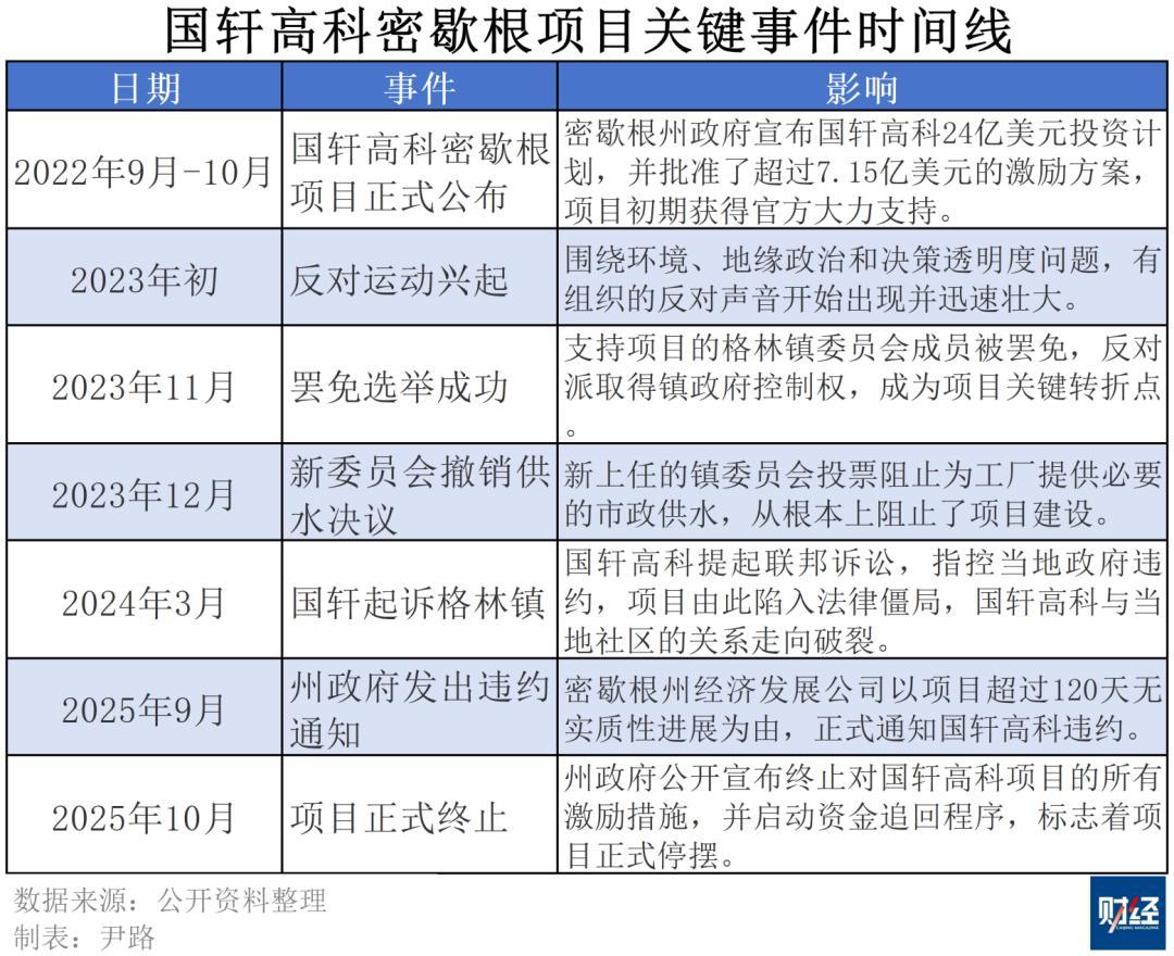 事實上,在密歇根州政府採取行動之前,國軒高科和項目所在地鎮政府之間的法律對抗早已讓項目寸步難行,州政府的決定,只是讓這場始於希望、陷入紛爭的投資風波暫告一段落。