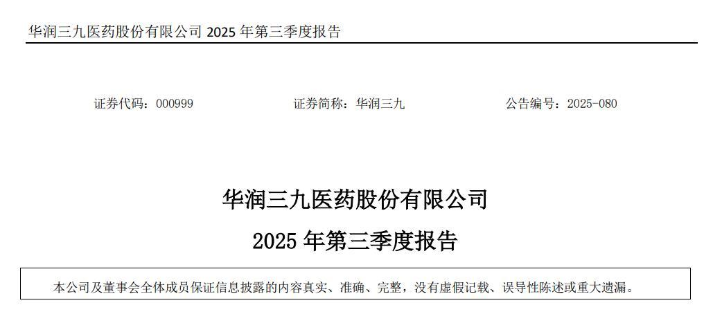 2025年10月24日,華潤三九發佈2025年三季報顯示,營收219.86億元,同比增長11.38%。歸母淨利潤23.53億元,同比下降20.51%,是自2021財年後的最大降幅。