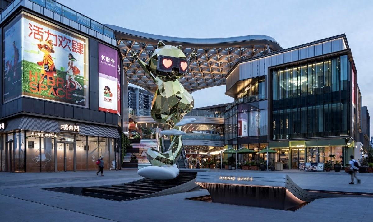 主入口廣場矗立着項目標識性IP“HUANS”浣熊,傳遞着年輕的活力;明亮通透的歡肆北街成爲時尚生活方式的“城市櫥窗”。