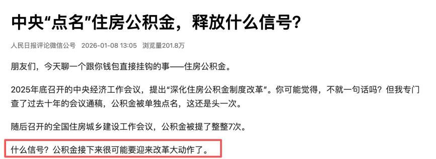 1月8日,《人民日報》突然發文——點名公積金,釋放什麼信號?