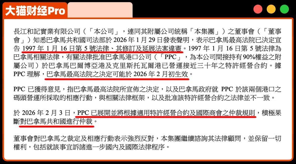 2月3日,PPC已經根據國際仲裁規則,對巴拿馬進行仲裁,畢竟,李嘉誠是真的有合同在手的。