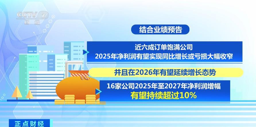 上市公司對於主動向市場傳遞經營信號的意願越來越高。萬得數據統計, 2025年有750餘家上市公司主動披露訂單動態,佔比達13.75%。結合業績預告,近六成訂單飽滿公司2025年淨利潤有望實現同比增長或虧損大幅收窄,並且在2026年有望延續增長態勢。其中,16家公司2025年至2027年淨利潤增幅有望持續超過10%。