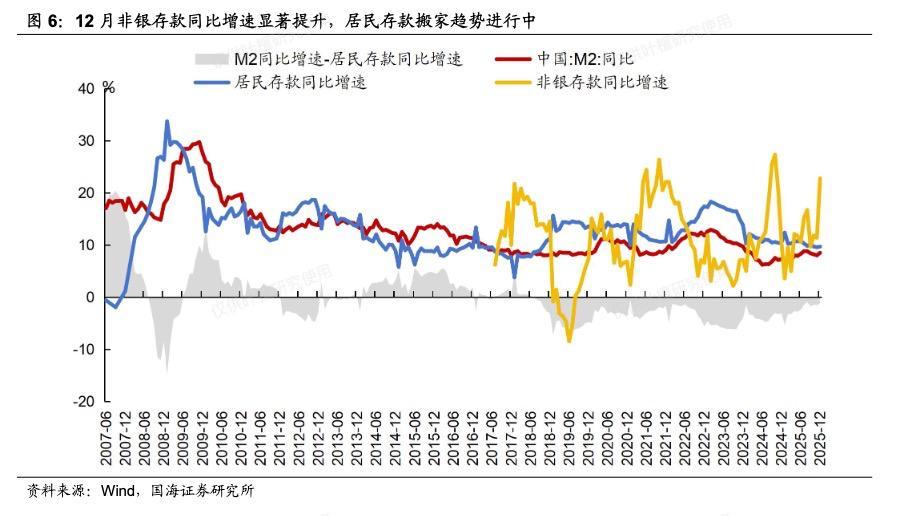 國信證券王劍1月9號在自媒體上分析,2026年年初有大筆定期存款到期。他估計,2026年到期的定期存款規模大概在57萬億元,主要在年初到期。
