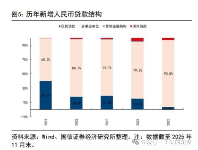 根據央行數據,2025年前11月,累計新增人民幣貸款15.36萬億元,居民新增貸款5333億元,僅貢獻增量的3.5%,創歷史新低。