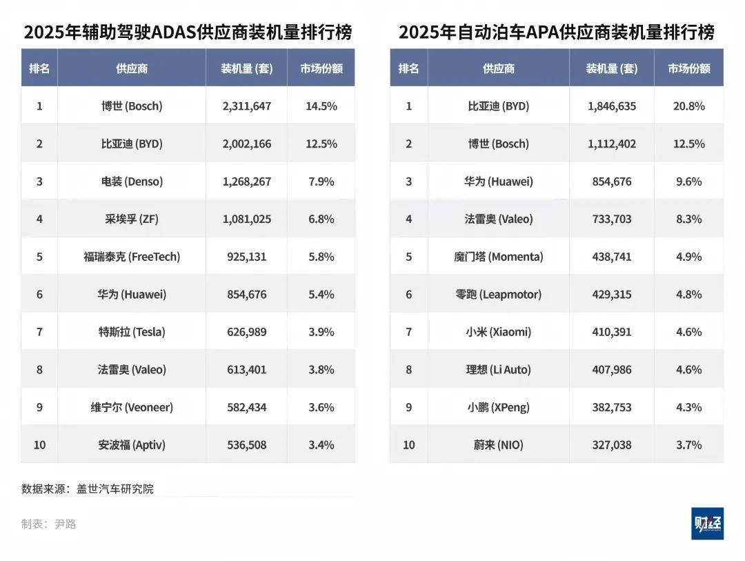 市場數據表明,博世的核心技術在中國市場的基本盤依然穩固。根據蓋世汽車2025年的統計,博世在行車ADAS領域以14.5%的市場份額穩居第一,在前視攝像頭領域以13.2%的份額位列榜首,在自動泊車APA領域以12.5%的份額排名第二。