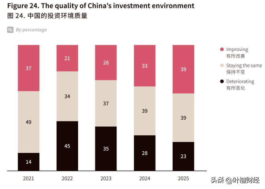 對於中國的投資環境,有39%的美國企業認爲有所改善,創2021年以來新高。