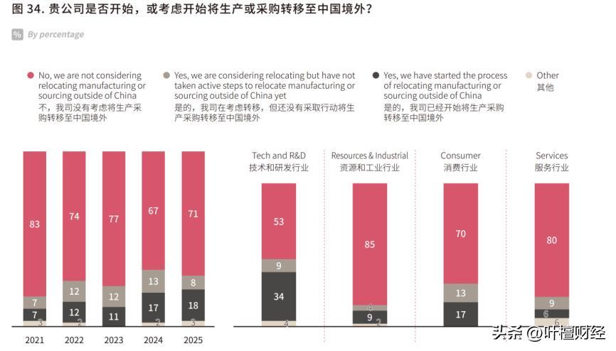 2025年,受訪企業中71%暫未考慮將生產、採購環節外遷至中國境外,較上一年度提升4個百分點。